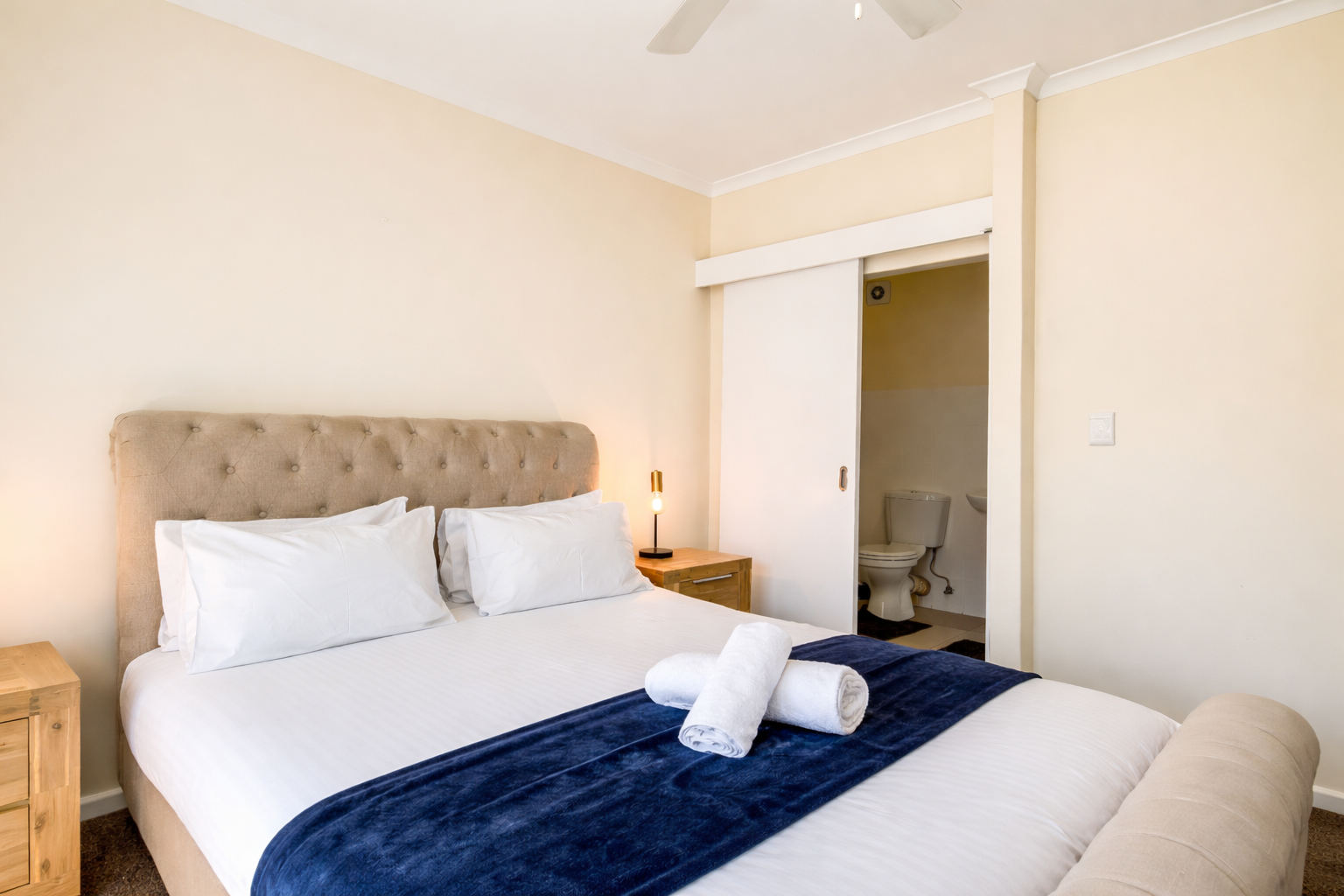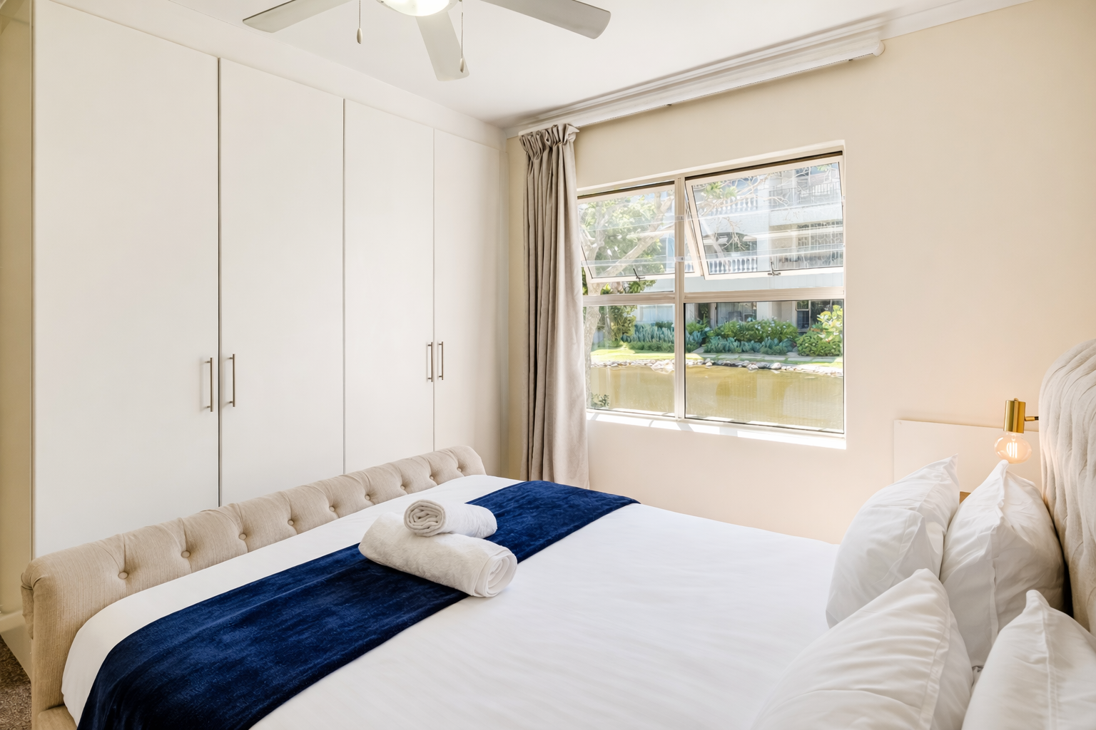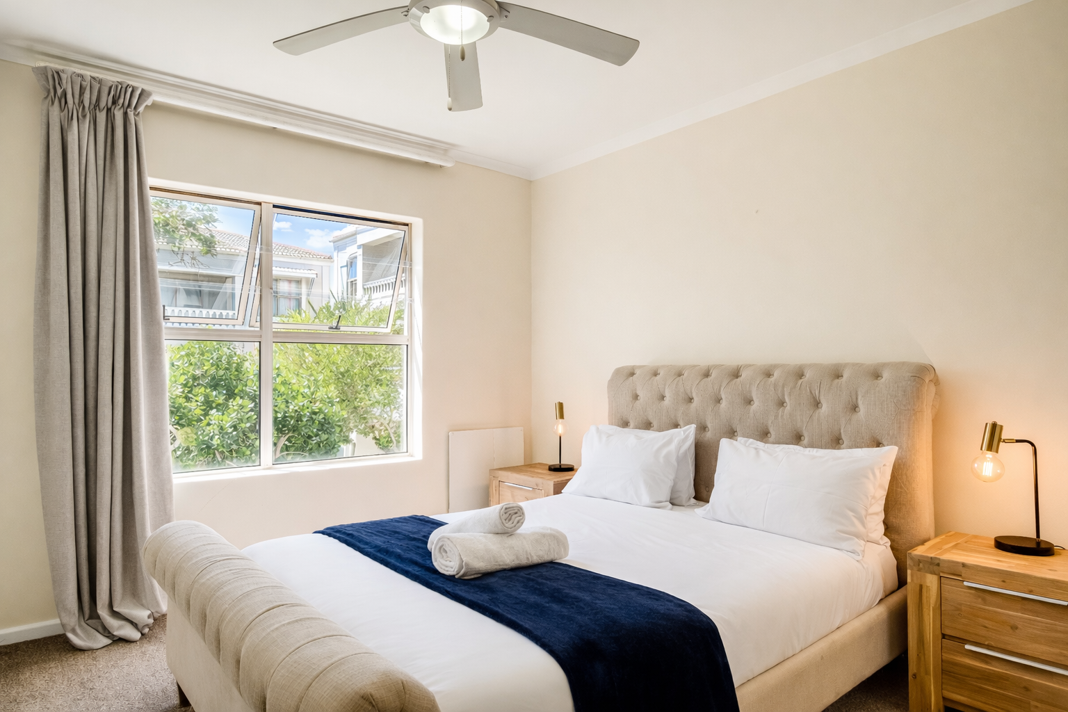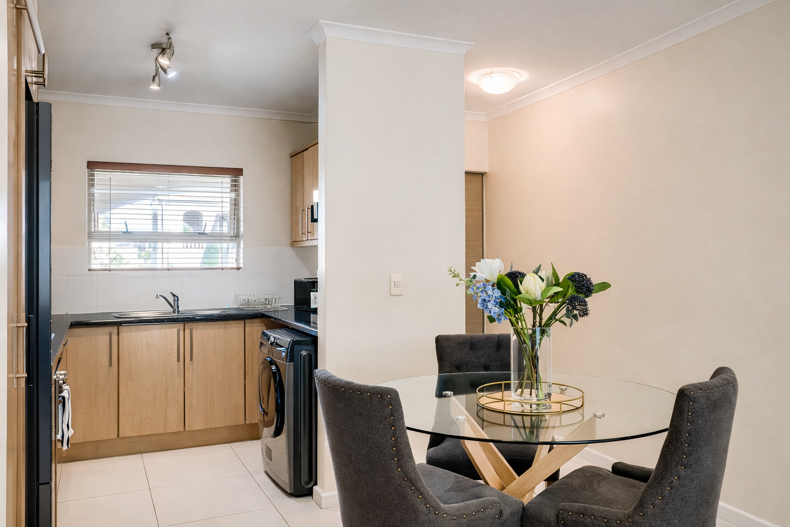 Spacious Accommodations: Belina - Bougain Villas Estate View in Cape Town offers a spacious apartment with two bedrooms and two bathrooms. Guests enjoy a fully equipped kitchen, balcony with garden views, washing machine, and a private communal pool. Modern Amenities: The property provides free WiFi and free on-site private parking. Additional amenities include a kitchenette, TV, and a washing machine, ensuring a comfortable and convenient stay. Convenient Location: Located 9.3 mi from Cape Town International Airport, the apartment is close to attractions such as Milnerton Beach (1.6 mi), CTICC (6.8 mi), and Table Mountain (12 mi). Reception staff speak English.