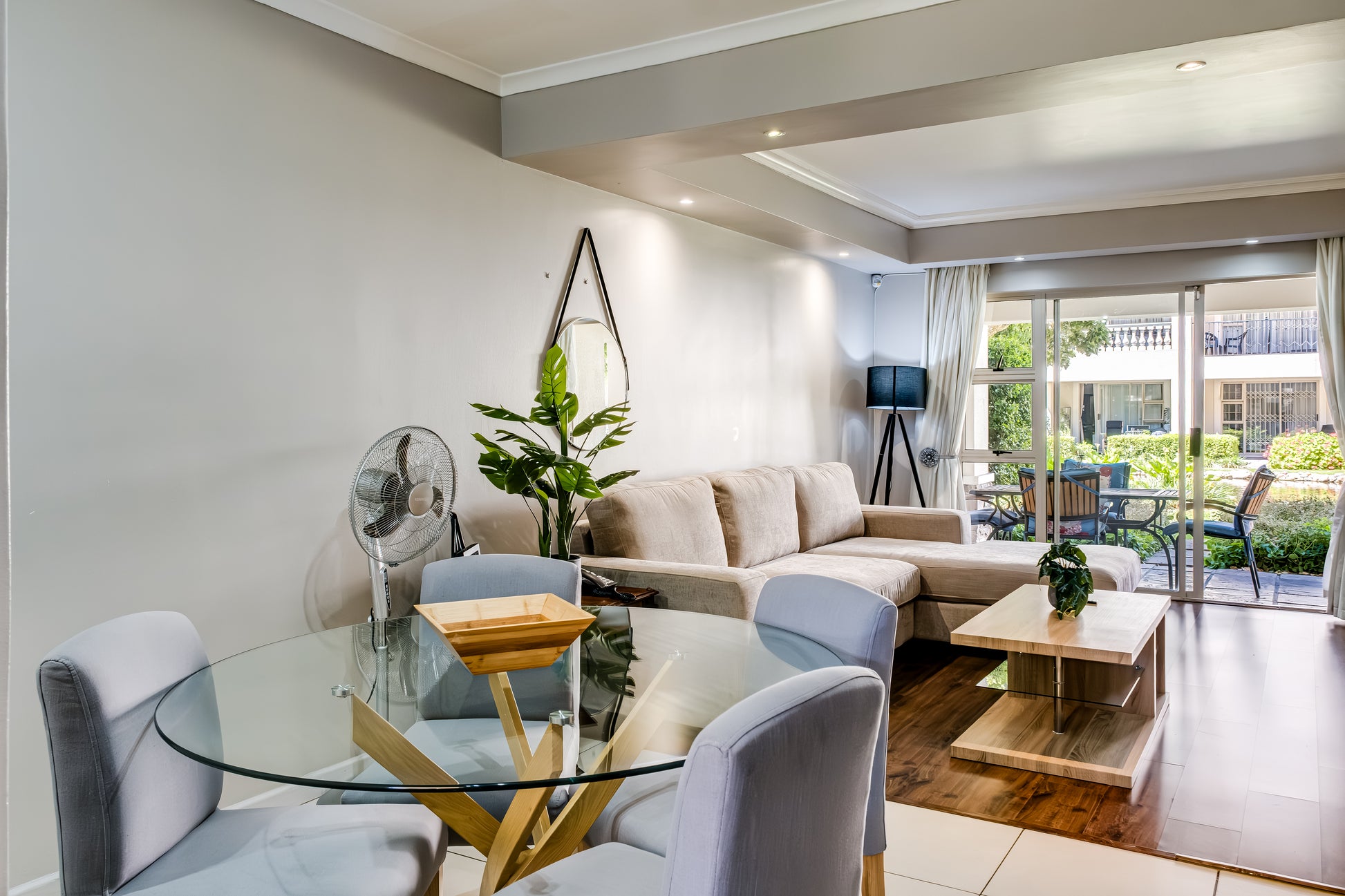 Spacious Accommodation: Belina - Bougain Villas Premier in Century City Cape Town offers a spacious apartment with two bedrooms and two bathrooms. The living room features a sofa and a dining area, providing ample space for relaxation and entertainment.